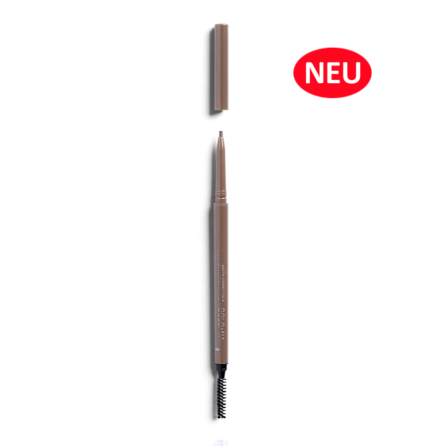Der Dolomia Augenbrauenstift Bionde mit herausdrehbarer Spitze zeichnet den Brauenbogen höchstpräzise nach und sorgt so für einen natürlichen Effekt. Das Ergebnis: